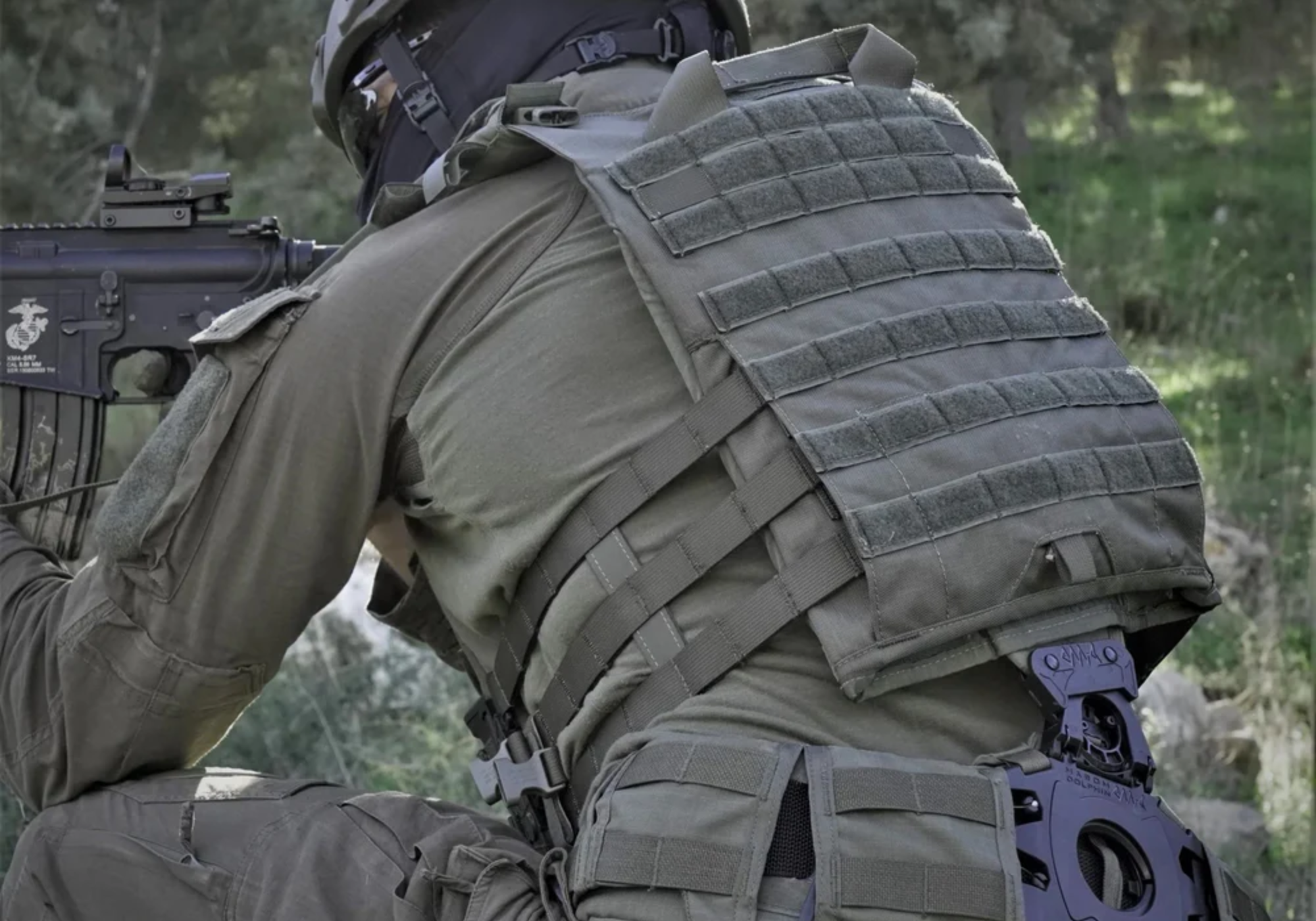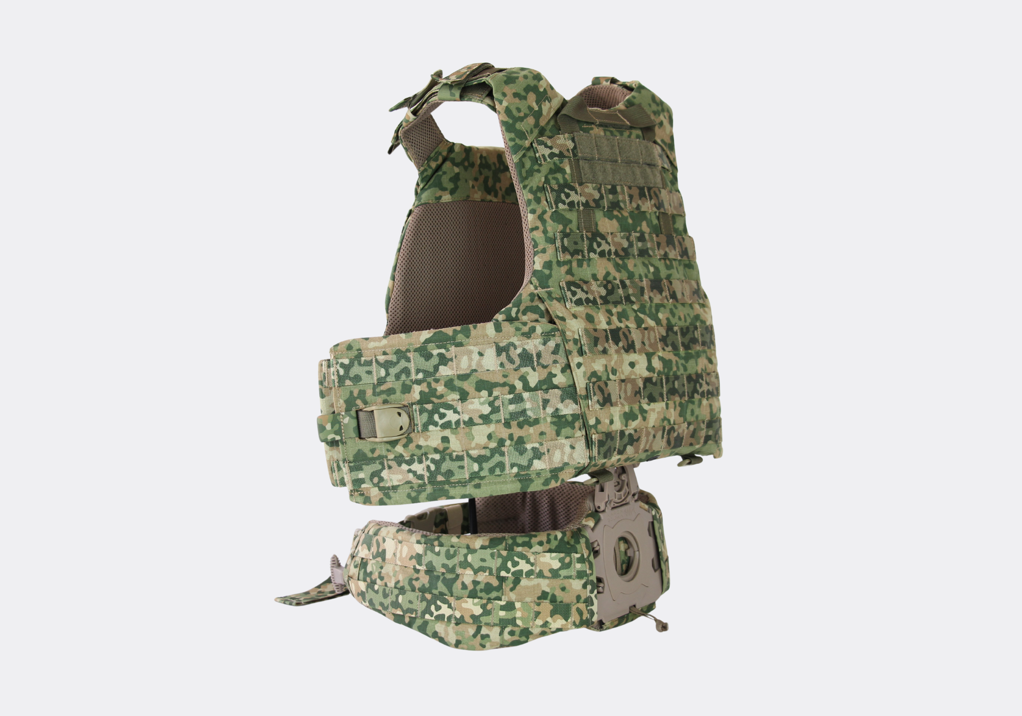 Unites the body armor, the combat belt, and the backpack on one frame, and allows carrying a heavy weight with unparalleled comfort, eliminating the need for the backpack's shoulder straps.